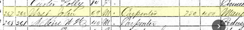 In 1870, the last federal census he was alive, he was a carpenter:[4]