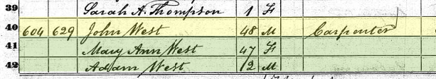 John West, the elder, was listed as a carpenter in 1850[1]: