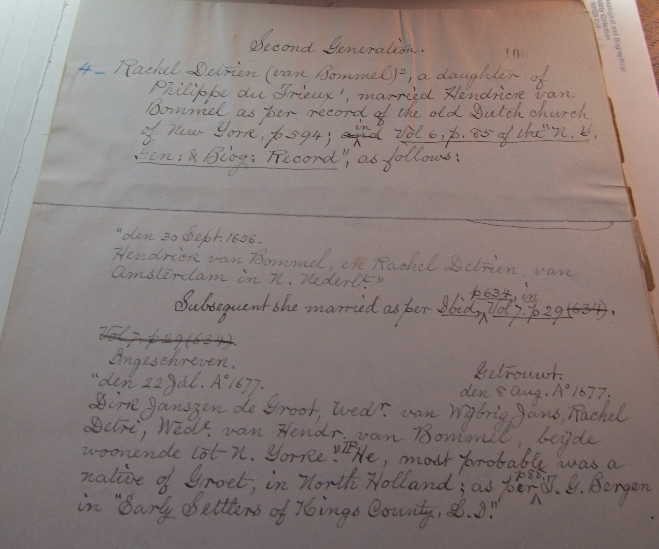 1. Thursday Nov 8. One Mary de Truy, widow, requests the appointment if Isaack de Foreest and Govert Loockermans as guardians of her minor children. Estate also has a mortgage on house of Andries Joghims. (See “N. Y. Year Book of the Holland Society,” 190_, p 121, from “Minutes of Orphans Court” in City Clerks office of N. Y. City).