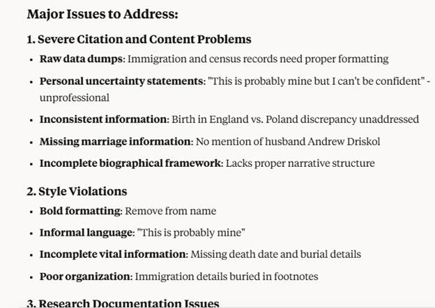 - Clean up OCR text: Found a letter or newspaper clipping with poor formatting? AI can help you fix those errors without pulling your hair out. (Check the cleanup. Always double-check the results.)